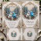 Winterlandschaft mit niedlichem Vogelhochzeitpaar. Der Hintergrund zeigt eine stilisierte Winterlandschaft mit sanftem Schnee und schneebedeckten Tannenbäumen und schafft eine romantische und festliche Atmosphäre.