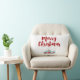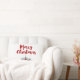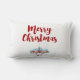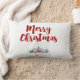 Ein Kissen aus Lendenwirbel mit einem digitalen Bild einer bemalten Abbildung einer roten Kirche und eines steilen Steiles. Ein heller Weihnachtsstar, der über der Decke leuchtet. Familien vor dem Haus, die für einen Gottesdienst anreisen. Winterschnee bedeckt den Boden und Erholungen auf niedlichen Buschkiefern.