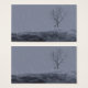 Eine kalte und windige 3D-Landschaft im Winter, geschaffen in Vue. Auf einem Hügel weiß mit Eis und Schnee, gegen einen stürmisch grauen Himmel mit Regen oder stetig fallendem Schlitten steht ein einsamer, nackter Ahornbaum mit einer Holzbank darunter.