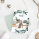 Elegante und festliche Weihnachtsfeiertage mit Aquarellen-Eukalyptus-Blätter und grünem Blattwerk aus der oberen links Ecke. Passen Sie Ihre Feiertagsdetails auf der rechten Seite an, die mit "Weihnachts-Party" in der schicken Kalligraphie-Skript verziert sind. Die Einladungen kehren in feste Waldgrün um.