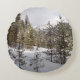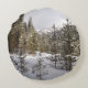 Winterschneebergszene in Montana Rundes Kissen
