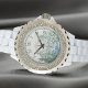 Eine wunderbare Damenuhr mit weißem Armband und grün-weiß-kariertem Ziffernblatt. Trägt sich ganz fabelhaft. Exzellenter Druck, sehr klare Farben. Schönes Design.
