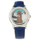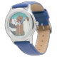 Kinderuhr aus Edelstahl mit blauem Lederarmband