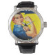 Uhr, Vintage Männeruhr mit schwarzem Lederarmband