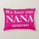 Wir Liebe Sie Nana Niedlich Großmutter Kissen. Das moderne rosarote dekorative Kissen ist ein tolles Geschenk für Großmütter am Muttertag, im Urlaub oder zum Geburtstag. Maschinenwäsche. Versteckter Reißverschluss zum leichten Waschen. Kisseneinsatz inbegriffen. Perfektes Geschenk, Nana wird es schätzen! 30 Tage Geld zurück Garantie. Weltweit schnell verschifft. Made in U.S.A. Wir Liebe Sie Nana Niedlich Großmutter Kissen, erstellt von der Original-Künstler RjFx. *Alle Rechte vorbehalten. #Nana #GroßmutterGeschenk #ZazzleMade