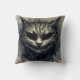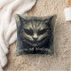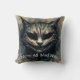 Das Kopfkissen des Kopfkissens enthält den Text "We're All Mad Here" mit einem felinen Aquarellwerk einer finsteren Katze in neutralen und dunklen Tönen. Text ist anpassbar/abnehmbar. Die böse Katze erinnert an die geheimnisvolle lächelnde Cheshire-Katze von Lewis Carolls klassischem Meisterwerk der Kinderliteratur, Alice's Adventures in Wonderland! Ideal zu Halloween oder zu jeder Zeit, für Fans von Katzen und Schatten.
