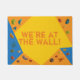 Moderne Türmatte mit einer Felswand und Kletterhalterungen und der Aufschrift "Wir sind an der Mauer". Das perfekte Geschenk für jeden Kletterer. Sie können den Text bearbeiten, um die Nachricht zu ändern.