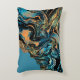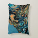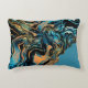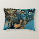 Wirbel mit orangefarbenen, blauen, schwarzen und grünen abstrakten Kunstwerken auf einem Kissen.
