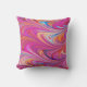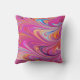 Kissen mit einem coolen trippy psychedelischen Design. Rosa, Orange und blaue Farbtöne, die sich alle umkreisen. Retro Hippie Vibe.