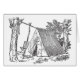 Vintage Skizze des grundlegenden Leinwandzeltes gehalten durch Seilschnur zwischen zwei Bäumen