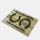 Fragen Sie Ihre Gäste zu "abwischen bitte Ihre Hufe" mit dieser Matte, die mit Schwarzem und Goldhufeisen verziert wird.