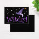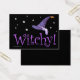Linda Baysinger Pecks Hexendesign mit Sternen und lila Text, der "Hexe!" lautet. Fügen Sie einfach Ihren eigenen Text auf der Rückseite, um zu personalisieren. © Linda Baysinger Peck Alle Rechte vorbehalten