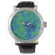 Uhr, Vintage Männeruhr mit schwarzem Lederarmband