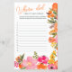 Testen Sie die Abenteuer des Ehepaares mit diesem Brautparty "Wo ist das Paar gegangen?". Mit einem lebendigen Blumendesign in Aquarelltönen in lebhaften Rosa-, Orange- und Gelbtönen lädt dieses Spiel die Gäste dazu ein, auf der Grundlage von Fotos oder Hinweisen zu erahnen, wo das Paar gereist ist. Die eleganten Blumenakzente sorgen für eine helle und fröhliche Touch, die sich perfekt für Brautpartys mit Hauch- oder Blumenmotiven eignet. Es ist ein großartiger Eisbrecher, der die Liebe des Ehepaares feiert und für jeden ein unvergessliches Erlebnis schafft.