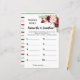 Wo waren sie? Marsala Floral Brautparty Game. Formulierung in Design ändern. Für weitere Anpassungen (Schriftart, Schriftart) klicken Sie auf Personalisieren, scrollen nach unten und klicken auf den Link "Bearbeiten mit dem Design-Tool". ** Karo Kollektion für alle passenden Designs ** HOW TO PLAY: Fotos der Braut und des Bräutigam an verschiedenen Orten anzeigen und nummerieren. Die Gäste schreiben ihre Schätzung für jedes Foto und die Person mit den besten Antworten gewinnt!
