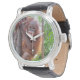 Uhr, Vintage Männeruhr mit schwarzem Lederarmband