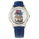 Kinderuhr aus Edelstahl mit blauem Lederarmband