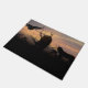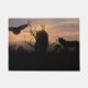 Zwei Wölfe und ein fliegender Rabe auf einer silbernen Landschaft und einem Wolkenuntergang.