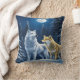Zwei majestätische Wölfe stehen inmitten eines schneebedeckten Waldes, beleuchtet vom Glühen eines Vollmonds, umgeben von hohen, dunklen Kiefern, die ein Gefühl der Ruhe und wilde Schönheit hervorrufen.