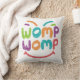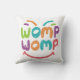 Das Womp Womp Design zeichnet sich durch handgezeichnete Buchstaben aus, die die Phrase in verschiedenen Farben darstellen, mit Haaren über und einem Lächeln darunter. Also ja. Frau.