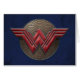 Karo aus dieser geprägten Wonder Woman-Frauensymbole in Rot, gelegt auf einer Scheibe goldener konzentrischer Kreise.