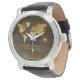 Uhr, Vintage Männeruhr mit schwarzem Lederarmband