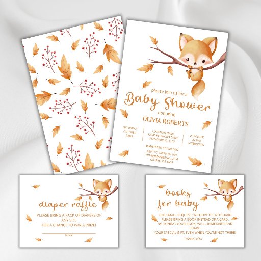 Adorable Waldland Herbstdesign mit Aquarell Babyfox, autimn Blätter und Fallmuster auf der Rückseite. Dieses Design ist geschlechtsneutral und kann sowohl für Mädchen als auch für Jungen funktionieren. Mit dem Vorlagenfeld können Sie ganz einfach Ihre eigenen Daten hinzufügen.