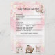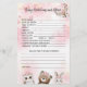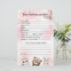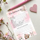 Lass, dass die Gäste ihre Gedanken und Wünsche mit diesen Vorhersage- und Ratenkarten für eine Woodland Girl-Babydusche teilen. Es ist mit pastellfarbenen Waldelementen und sanften Blütenakzenten gestaltet und ist ein unvergesslicher Sake für Eltern, die es sein möchten.