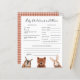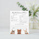 Whimsical Waldland Thema Baby Dusche Babydusche Vorhersagen und Ratschläge Karte mit der Darstellung eines Waschbären, Fuchs, Hirsch, Eule, Bär, und ein Kaninchen. Geschlechterneutrales Design. Die Texte sind bearbeitbar. Perfektes Spiel während der Dusche zu spielen und wird definitiv ein toller Sake sein! Die Karte frage den Gästen vorherzusagen, wie das Baby aussehen würde.