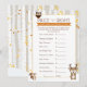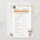 Freundliche kleine Waldfreunde auf diesem bezaubernden "Price is Right" füllen die leere Baby Duschspielkarte für einen schönen Herbst oder eine winterliche Babydusche. Ein niedlicher kleiner Fuchs, Bär, Eichhörnchen, Eule, Racon, Hasen und Hirsche, Set in einem Birkenwald im Herbst oder Winter. Hier finden Sie alle passenden Babydusche-Accessoires!