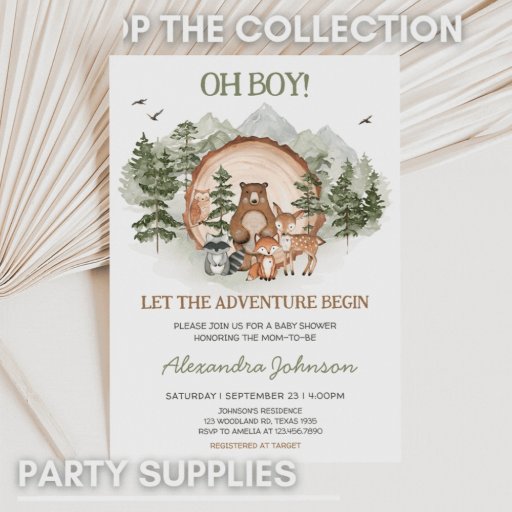 Woodland Ließ die Adventure Begin Baby Dusche Einladung