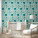 Mikroskopische Diatome, Algen in Single-Form mit einer Zellenwand aus Kieselsäure, erzeugen ein lustiges Muster auf einem Meer von helltürkisfarbenen und zeigen einige der vielen Formen, in die sie kommen, inklusive Kreise, Sterne, Quadrate und andere.
