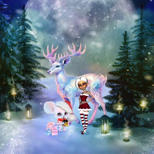 Wunderschöne Fantasy-Rentiere mit niedlichem Elf in einer Winterlandschaft
