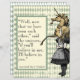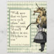Whimsikales Vintages Design mit getönter Original Alice Illustration und goldenes Einhorn. Zitat stammt aus der Alice im Wunderland: Durch das Blickfeld ""Nun, jetzt, da wir uns gesehen haben", sagte das Einhorn. Wenn du an mich glaubst, werde ich an dich glauben." Laubgrün-Harlequin-Hintergrund