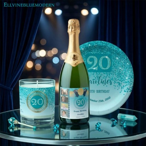 Radiant Teal Blue Glitter | 20th BirthdayDesignt von Florence C