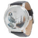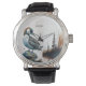 Uhr, Vintage Männeruhr mit schwarzem Lederarmband