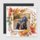 Diese schöne fallfoliage Erntedank Familie Foto Magnetkarte zeigt Ihr Lieblings-quadrat Foto umgeben von wunderschönen Aquarellfarben Herbst Blume und Blätter. Personalisieren Sie diese Bildmagnetkarten mit Ihren Fallsegmenten oder Ihrer Urlaubsbotschaft in Orange unter dem Herbstdesign.