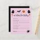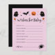 Erhöhen Sie Ihr Halloween Baby Duschspiel mit unserem "Wishs for Baby" Witchy Thema! Dieses Spiel ist perfekt für eine Halloween-Babydusche geeignet und passt nahtlos in jedes Halloween-Thema. Entdecken Sie charmante Halloween-Themen mit Babydusche, die besonders für die Gäste interessant sind, die sich nach dem Thema "Babydusche" von Halloween sehnen. Genießen Sie eine einzigartige Drehung mit einem rosa Halloween-Babyduschthema. Entdecken Sie die Ideen von Halloween Babydusche, die Lust und Süße verbinden. Brauchen Sie Halloween Baby Dusche Ideen? Probieren Sie diese niedlichen Halloween-Babydusche! Erwägen Sie, etwas mit Halloween-Babydusche zu kombinieren, um Magie zu schaffen. Unser Spiel ist auch Krawatte in ein Baby Brauen Ideen Baby Dusche und Baby Brauen Dusche Ideen. Feiern Sie Ihr Baby mit Freude und Kreativität beim Brauen von Duschideen. Diese kleinen Ideen für eine Babydusche werden alle Ihre Gäste verzaubern.
