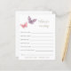 Lassen Sie Ihre Duschgäste diese wunderbaren Wünsche für Babykarten an Ihrer Babydusche ausfüllen. Mit einer Illustration von lila und rosa Schmetterlingen, die zu unserer Babyduschkollektion "Butterfly wünscht" passen. Personalisieren Sie die mit dem Mommy-to-be-Namen und dem Duschdatum.