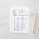 Erhöhen Sie Ihr Brautparty mit einem "Würden Sie lieber sein?"-Spiel, das Unterhaltung mit müheloser Eleganz verbindet. Dieses illustrierte Spiel mit zeitlosem, blumengeschmücktem Ambiente lädt die Gäste ein, die Vorlieben der Braut zu schätzen - von Paris oder Rom? Champagner oder Cocktails? - spielerisch und dennoch raffiniert. Dieses interaktive Party eignet sich ideal für Brautbrunches, Tee oder elegante Soirées. Es verleiht den Festlichkeiten eine raffinierte Touch und behalte verlobte Gäste. Verbinden Sie es mit passenden Einladungen, Menüs und Dekorationen für ein nahtlos abgestimmtes Event. Für Anpassungen, Alternativfarben oder personalisierte Bearbeitungen, wenden Sie sich an den Designer. Copyright Anastasia Surridge, alle Rechte vorbehalten.