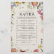 Tauchen Sie ein in die reizvolle Welt der Präferenzen der Braut mit unseren Aquarellfarben gepressten Blume "This or That: Bride's Choices" Brautparty-Spiel, eine spielerische und einnehmende Aktivität, die zum Lachen und näheren Verbindungen unter den Gästen entwickelt wurde. Set gegen eine warme Farbpalette, die Freude und Feiern ausstrahlt, lädt dieses Spiel die Teilnehmer ein, die Lieblingswahl der Braut zwischen zwei Optionen zu erraten, die ein breites Spektrum ihrer Interessen und Vorlieben abdecken. Jede Frage ist sorgfältig kuratiert, um lustige und interessante Fakten über die Braut zu enthüllen, was sie zu einem perfekten Eisbrecher und Gesprächsstarter macht. Das Spieldesign ist akribisch mit wasserfarbenen Blume und bezaubernden Insekten wie Schmetterlingen, Libellen und Ladybugs geschmückt, was den Festlichkeiten eine Touch von Naturschönheiten und Launen verleiht. Ergänzend zur bezaubernden ästhetischen Kalligraphie des Spiels schmückt die Überschrift die wunderschöne handgeschriebene Kalligraphie und fügt eine elegante Touch hinzu, die das Erlebnis insgesamt steigert. Dieser künstlerische Moment verstärkt nicht nur die visuelle Attraktivität des Spiels, sondern verkörpert auch die herzliche Freude und Vorfreude des Brautparty. Während sich die Gäste durch die Fragen "This or That" bewegen, lernen sie nicht nur mehr über die einzigartige Persönlichkeit und Präferenzen der Braut, sondern teilen sich auch die Wärme und Liebe, die ihre besondere Reise umgibt. Dieses Brautparty ist nicht nur eine Aktivität, es ist eine Feier der Geschichte der Braut, die alle einlädt, an der Freude und Spannung ihrer kommenden Schüler teilzunehmen. Teil einer koordinierten Suite. Suite hier ansehen: https://www.zazzle.com/collections/elegant_orange_watercolor_floral_bridal_shower-119388823689132589 Kontakt-Designer für passende Produkte. Copyright Anastasia Surridge für Elegant Invites, alle Rechte vorbehalten.