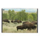 Amerikanische Bison waren fast ausgestorben, aber jetzt finden Sie große Herden in Wyoming in und um Grand Teton und Yellowstone Nationalparks. Diese Herde hatte mehrere niedliche Babybisons. Auch als Widescreen-Wallpaper "Wyoming Bison" von www.mlewallpapers.com.