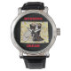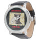 Uhr, Vintage Männeruhr mit schwarzem Lederarmband