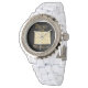 Eine wunderbare Damenuhr mit weißem Armband und grün-weiß-kariertem Ziffernblatt. Trägt sich ganz fabelhaft. Exzellenter Druck, sehr klare Farben. Schönes Design.