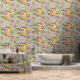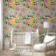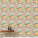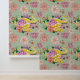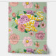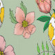 Ein gelber Albino-Ball-Python kommt um rosa und pfirsichfarbene Rose in einem aquamarinen Hintergrund herum.