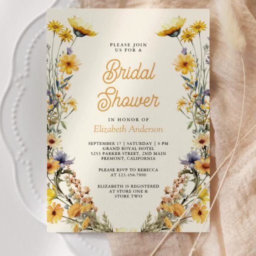 Yellow Boho Wildblume Foto QR Code Hochzeit Einladung