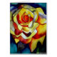 mit originellem Kunstdesign aus Aquarellmalerei von Sacha Grossel aus der Blume der Gelbkletterei Fresia. Dieses Blumendesign ist ein heller, farbenfroher Kontrast von Gelb vor einem dunkelblauen Hintergrund. Eine nahe, makro-Blume von wunderschönem botanisch inspiriert Design für Blume überall