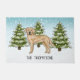 Desteis originelle Cartoon-Illustration eines niedlichen Labrador Retriever Zuchthundes. Der Hund ist in einer Winterlandschaft mit drei grünen Tannenbäumen und fallendem Schnee untergebracht. Der Hintergrund ist ein blaues bis weißes Gefälle, das das Design des kalten Wintertages verleiht. Es gibt auch einen personalisierbaren Textbereich für einen Namen.