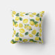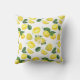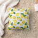 Kissen mit niedlichem Muster aus gelben Zitronen mit grünen Blätter und frisch geschnittenen Zitronenscheiben.