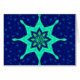 YinYang-Symbol innerhalb eines Kaleidoskop-Blume-Musters, umgeben von blauen Sternen
